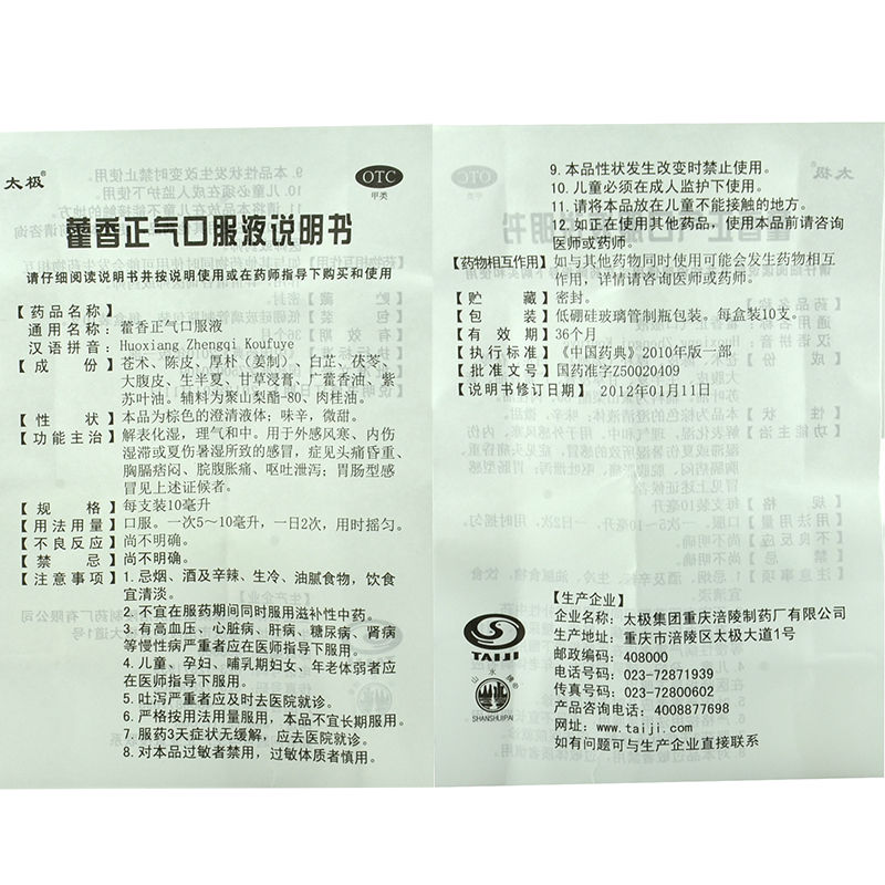太极藿香正气口服液