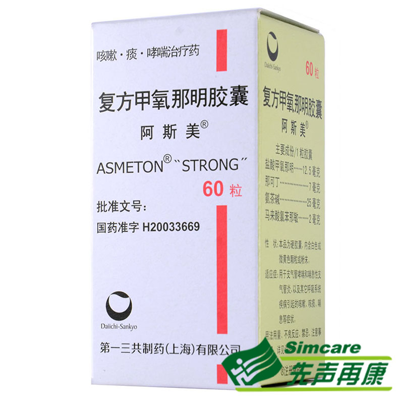 阿斯美复方甲氧那明胶囊60粒