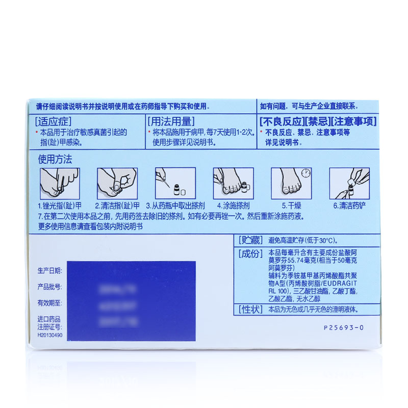 深层杀菌,防水持久。用于治疗敏感真菌引起的指(趾)甲感染