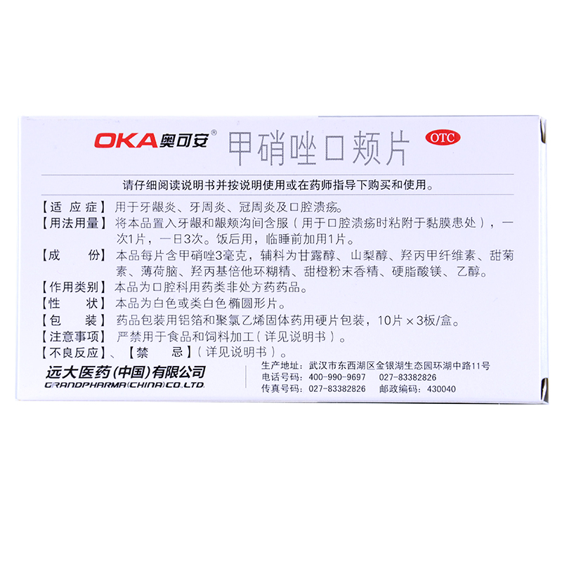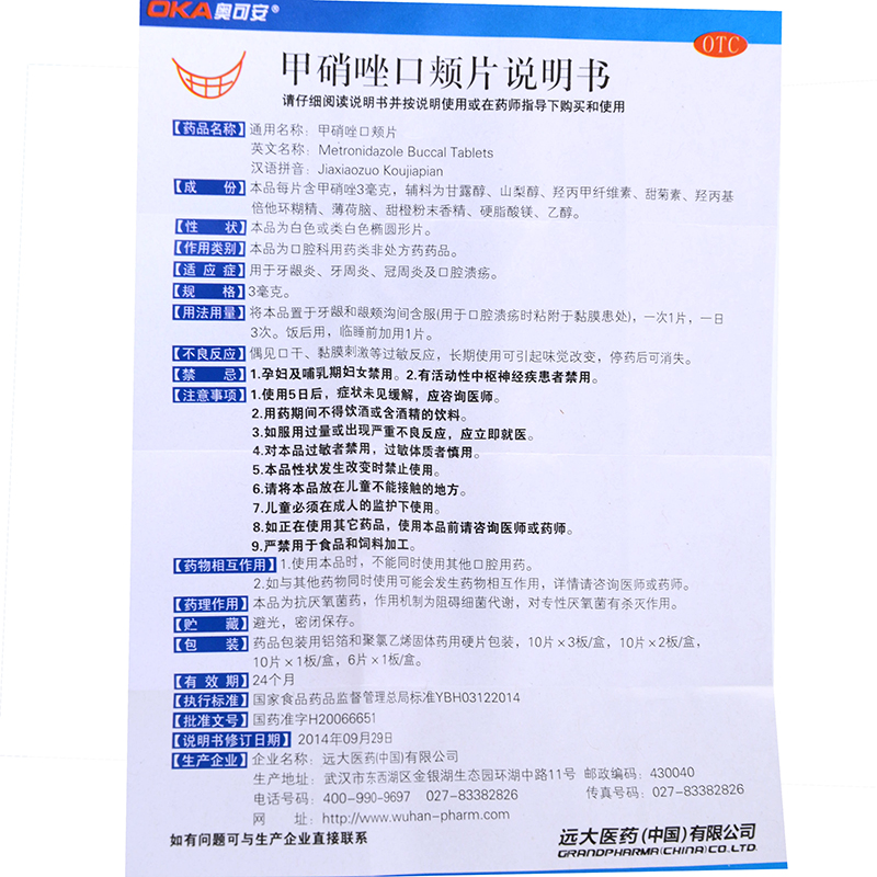 首页>全部商品>日常用药>五官用药>牙龈肿痛>奥可安 甲硝唑口颊片3mg*30片