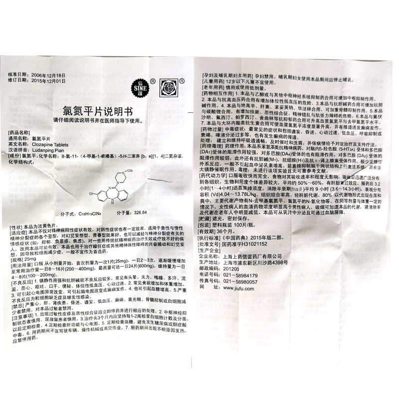 首页>全部商品>专科用药>神经科药>精神分裂>信谊氯氮平片25毫克*100片