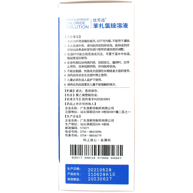 首页>全部商品>专科用药>呼吸科药>抗菌消炎>优可适苯扎氯铵溶液150ml【新老包装随机发,以收到为准】
