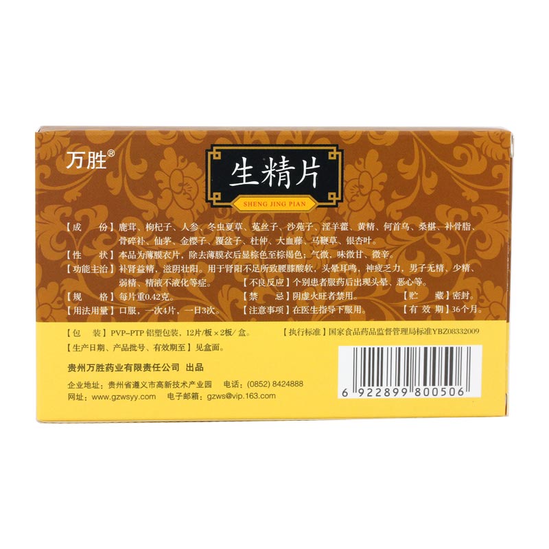 首页>全部商品>专科用药>男科用药>少精无精>万胜生精片24片