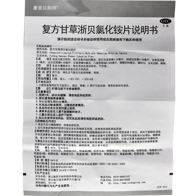 首页>全部商品>专科用药>呼吸科药>支气管炎>康恩贝复方甘草浙贝氯化铵片36片
