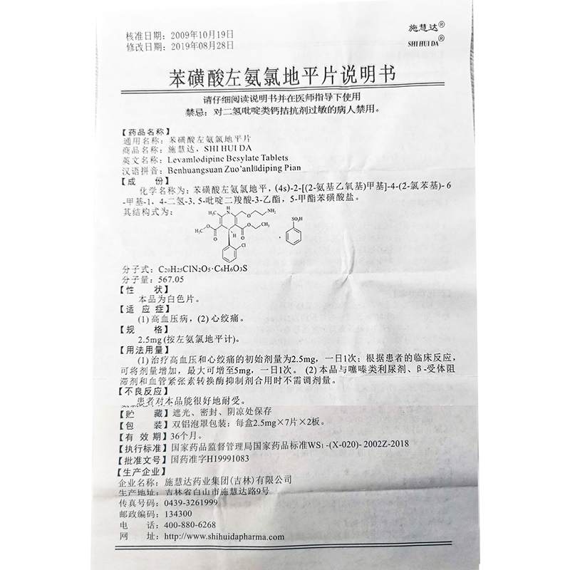 施慧达苯磺酸左旋氨氯地平片2.5mg*7片*2板